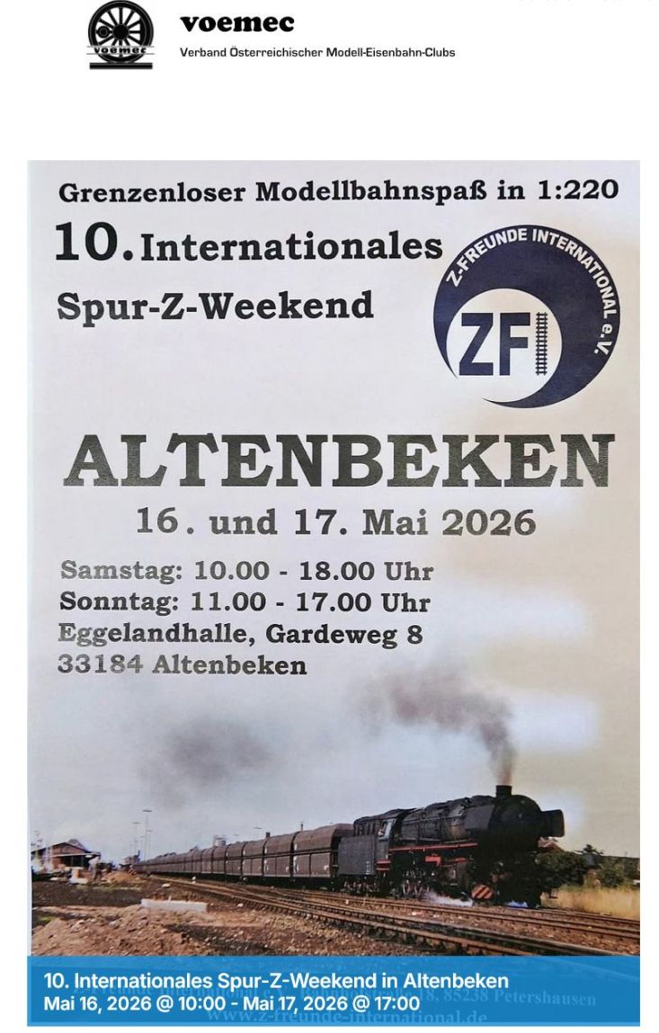 Von unserem ‚Wiener Z-Stammtisch‘ werden sich Helmut, Claus und Walter auf den Weg machen, um unseren ‚Wiener Z-Stammtisch‘, an diesem Wochenende, auf der Ausstellung zu vertreten.